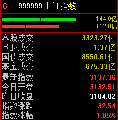 “五一”节后首个交易日,A股三大指数集体上涨,截止到上午收盘,沪指上涨1.05%,报3137.36点;深成指上涨2.05%,报9783.47点;创业板指上涨2.18%,报1898.94点;科创50指数上涨1.63%,报779.95点;北证50指数上涨1.04%,报822.69点。两市半日合计成交7237亿,北向资金净买入109.38亿。